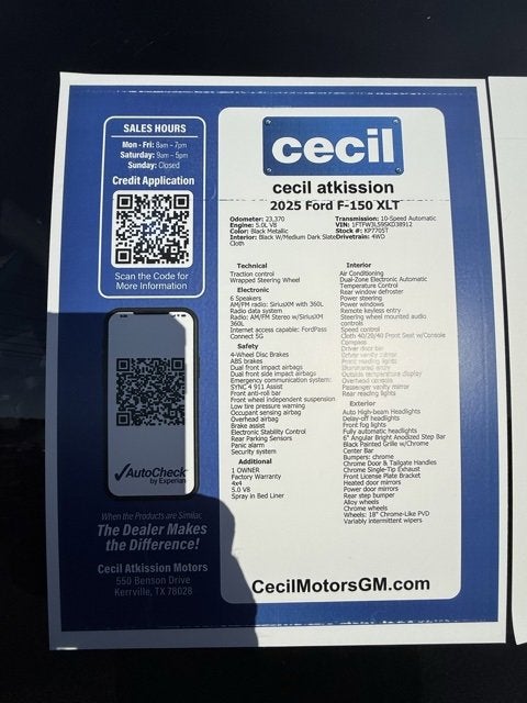 Black Metallic 2025 Ford F-150 XLT 4WD 10-Speed Automatic 5.0L V8 1 OWNER, Factory Warranty, 4x4, 5.0 V8, Spray in Bed Liner, 4WD, 6 Angular Bright Anodized Step Bar, Black Painted Grille w/Chrome Center Bar, Chrome Door & Tailgate Handles, Chrome Single-Tip Exhaust, Cloth 40/20/40 Front Seat w/Console, Dual-Zone Electronic Automatic Temperature Control, Equipment Group 301A Standard, Power door mirrors, Remote keyless entry, Steering wheel mounted audio controls, Wrapped Steering Wheel.